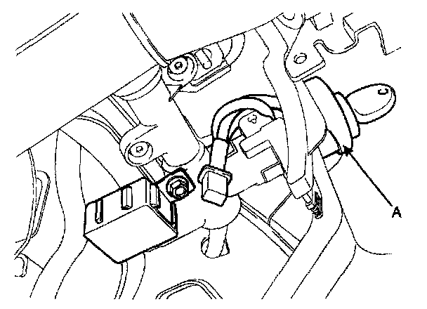 4. Remove the ignition switch (A) after loosening the screw with IG ON and disconnecting the 6P connector.