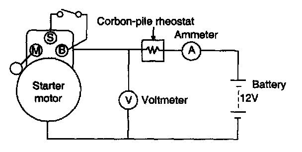 3. Connect a voltmeter (15 - volt scale) across starter motor.