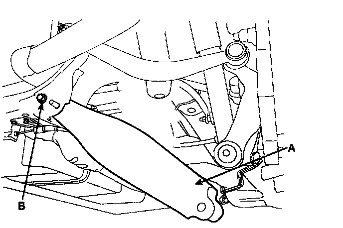 1. Pretighten the lower arm (A) mounting bolts (B) to the cross member.