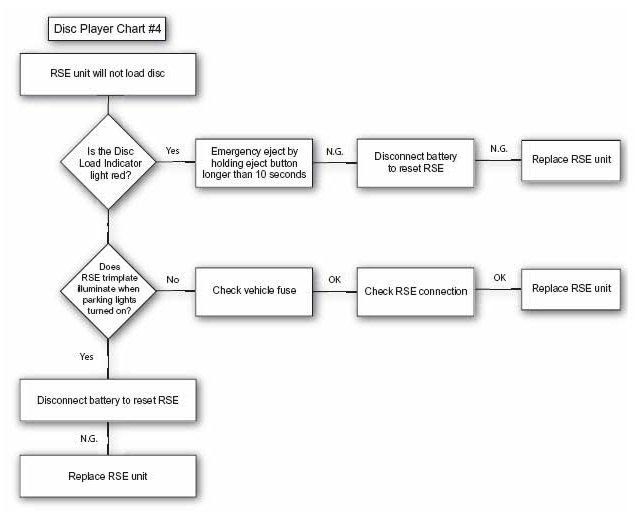 Children may insert a number of objects into the RSE unit, including multiple discs. If a RSE unit is found to be inoperative, confirm that no foreign objects or multiple discs have been inserted into the RSE. This check can be performed by closely observing the DVD insertion area for protruding objects or distortion of the felt around the DVD insertion area. If multiple discs, foreign objects or debris are found in the player, this is not a warrantable concern.