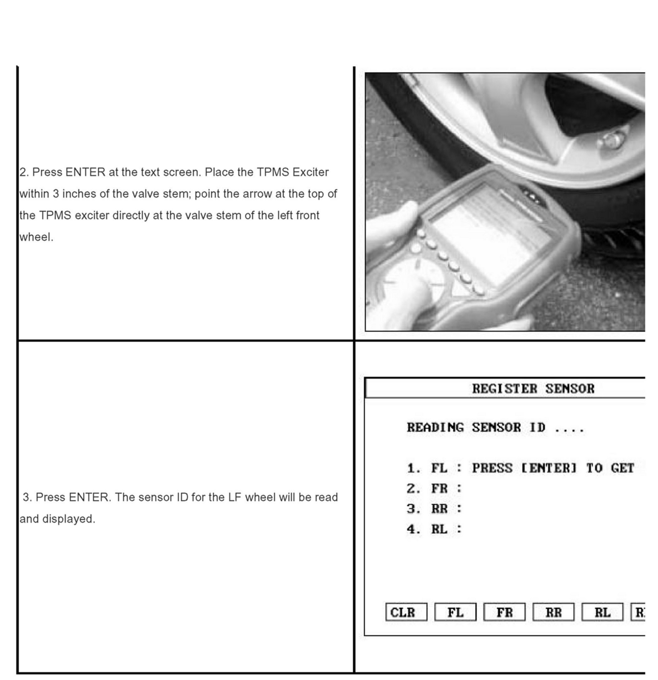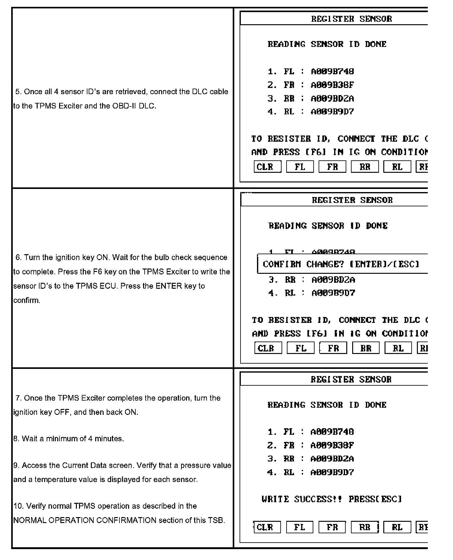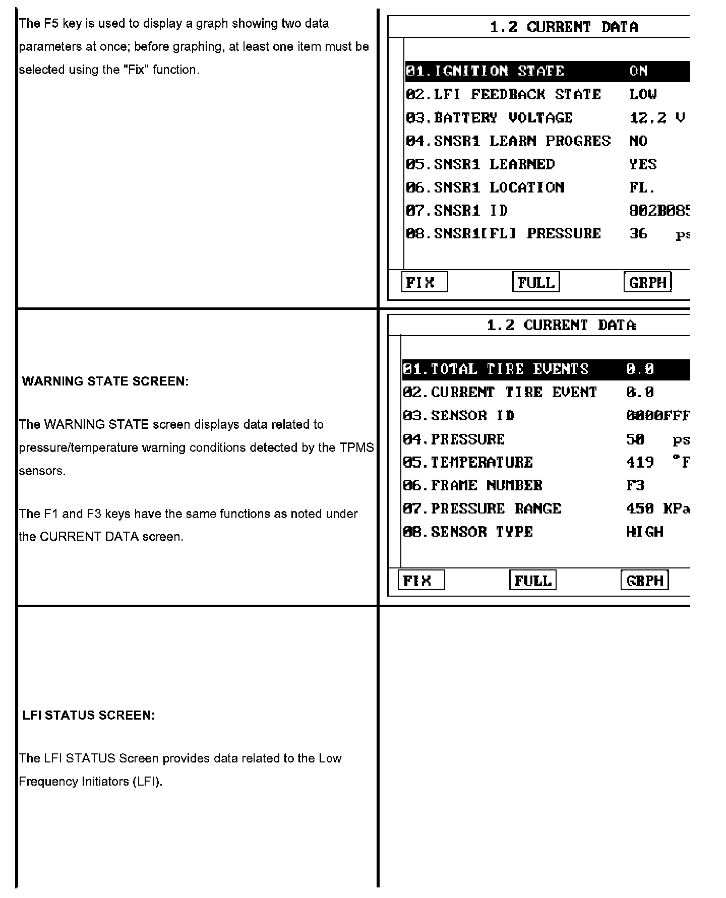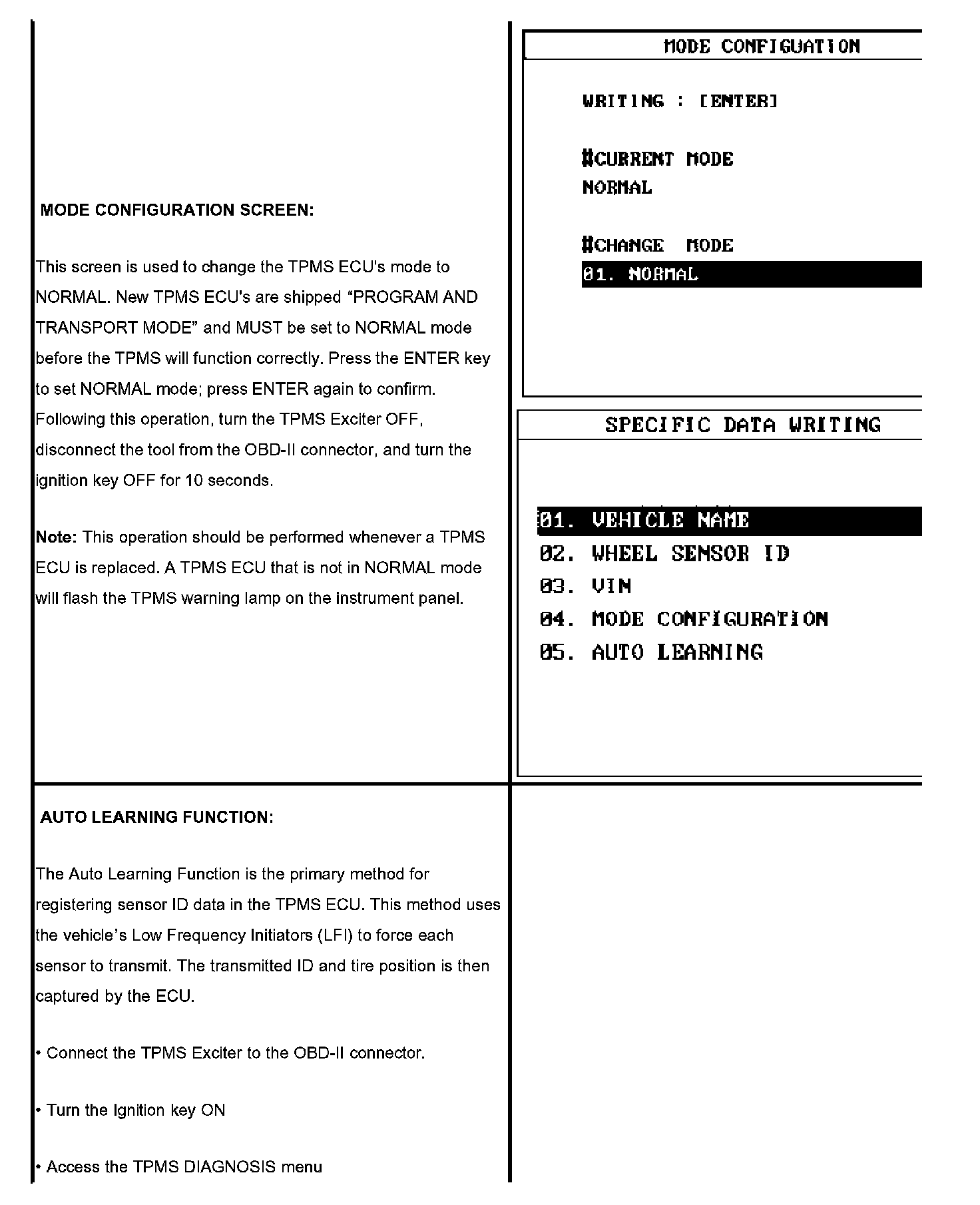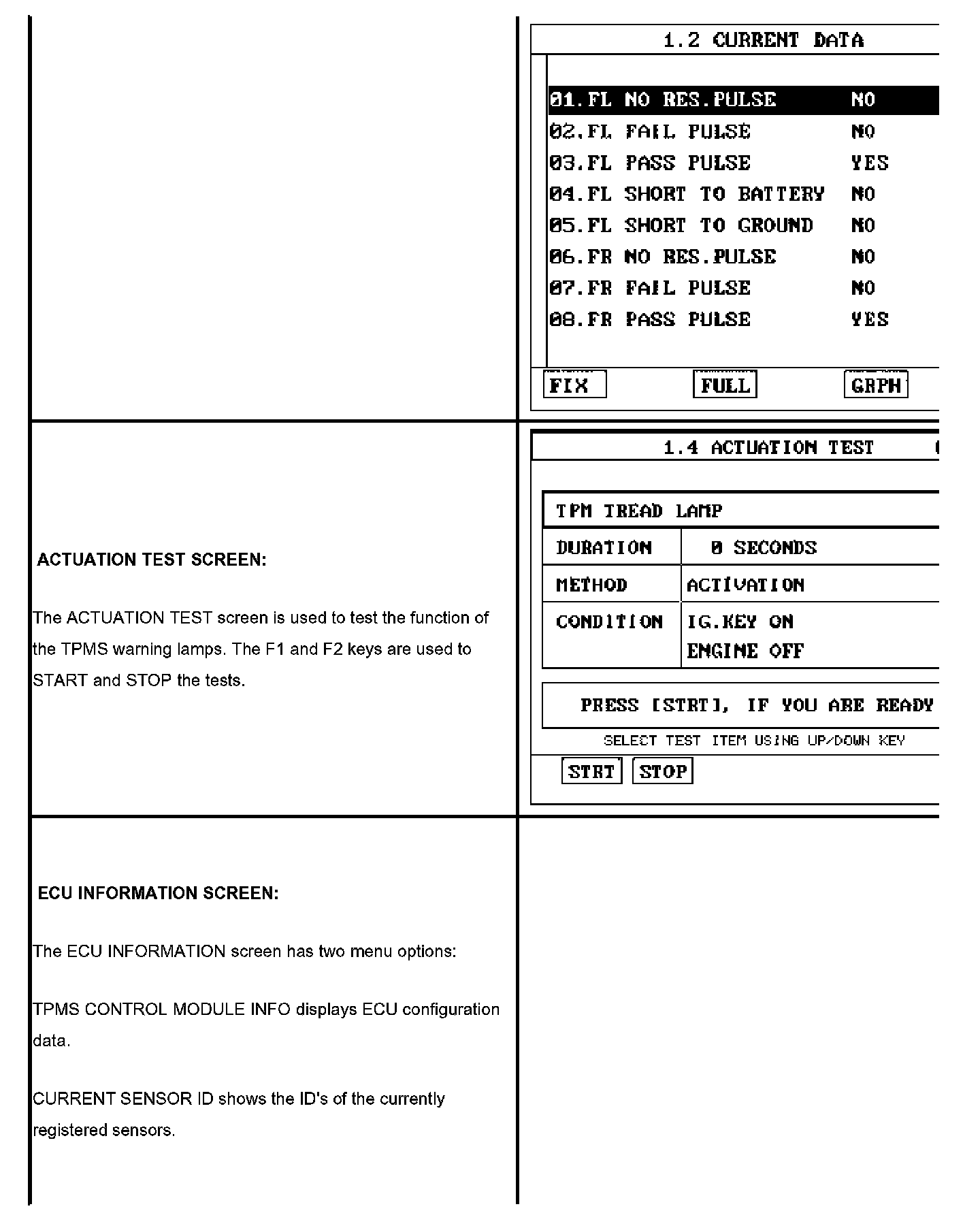 TPMS Diagnosis Menu Functions Screen and TMPS Diagnosis Functions