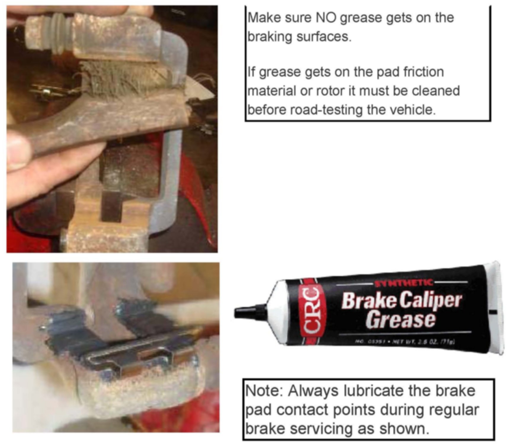 ^ Lubricate the cleaned areas with CRC(R) Synthetic Brake Caliper Grease