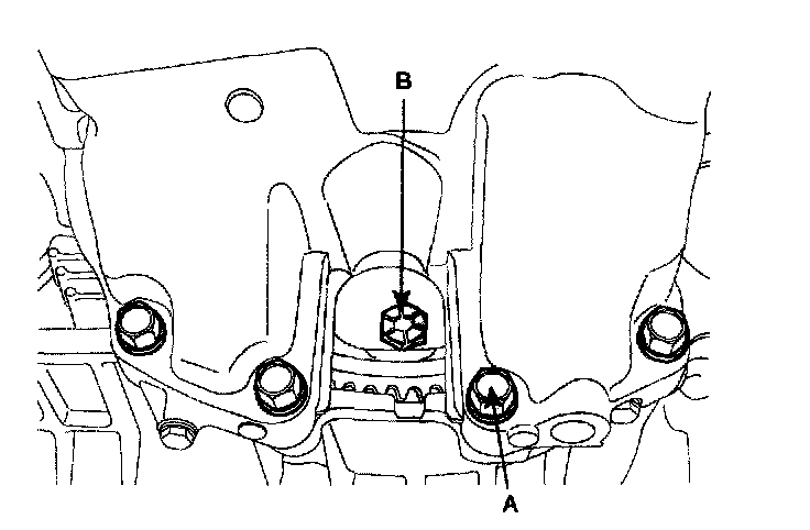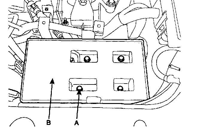 20. Install the battery tray (B) by tightening the four mounting bolts (A).