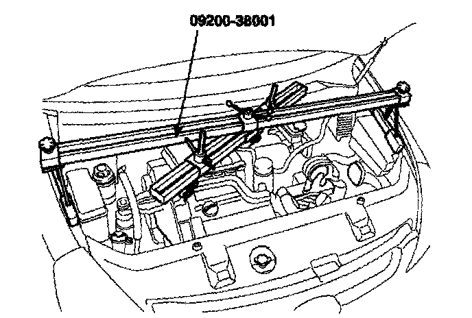 16. Remove the SST (09200-38001) holding the engine and transaxle assembly.
