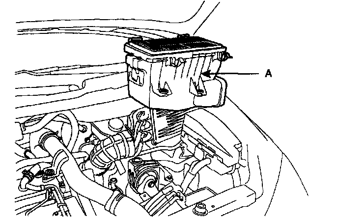 23. Install the air cleaner upper cover (B) by fastening the clips (A).