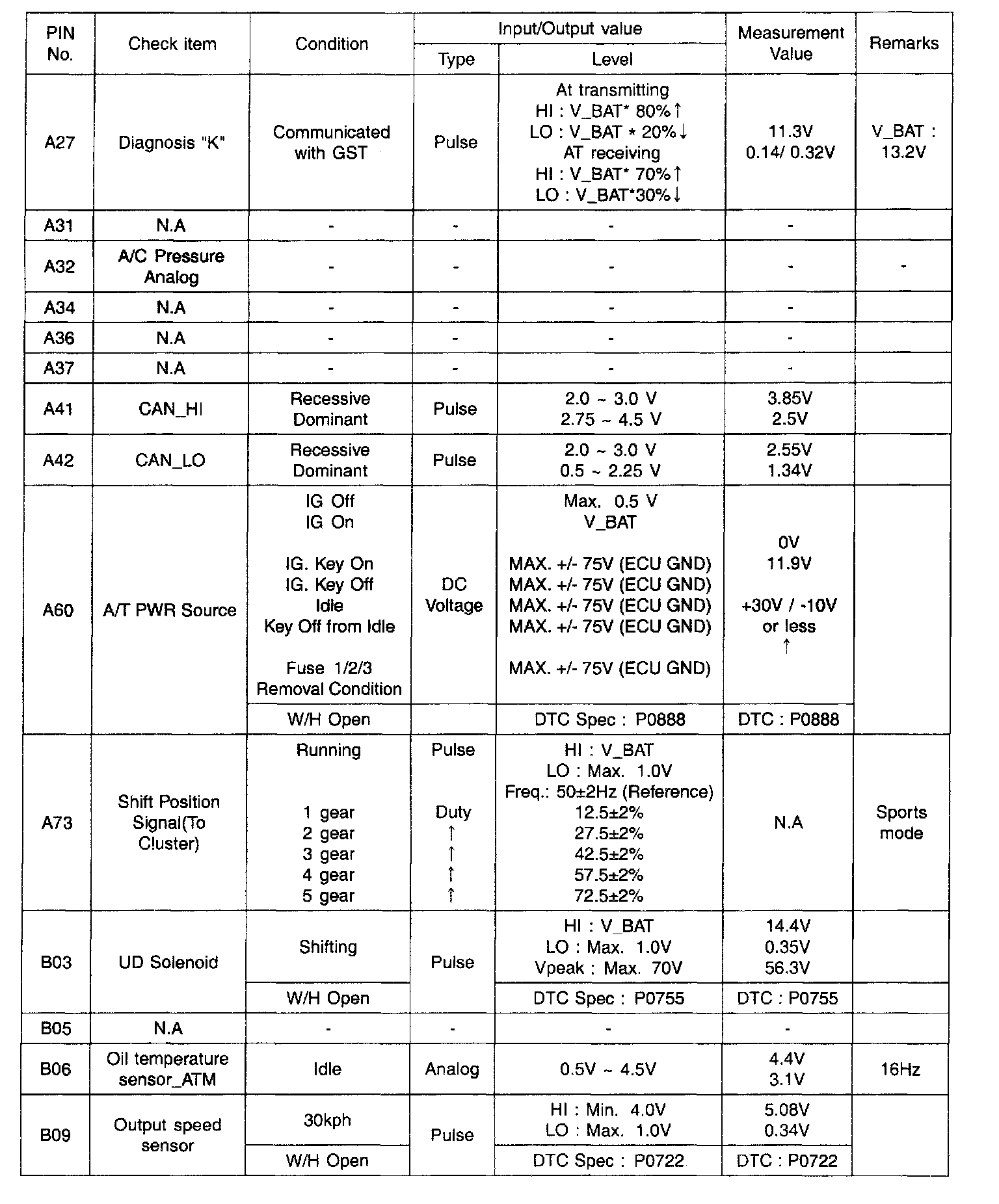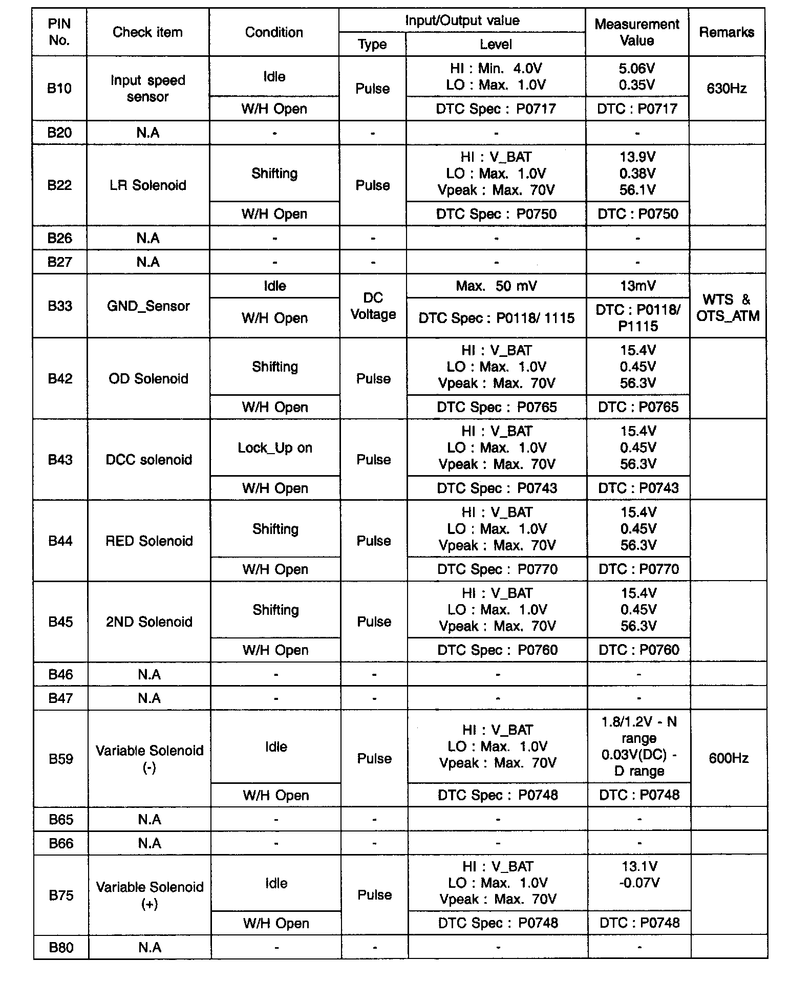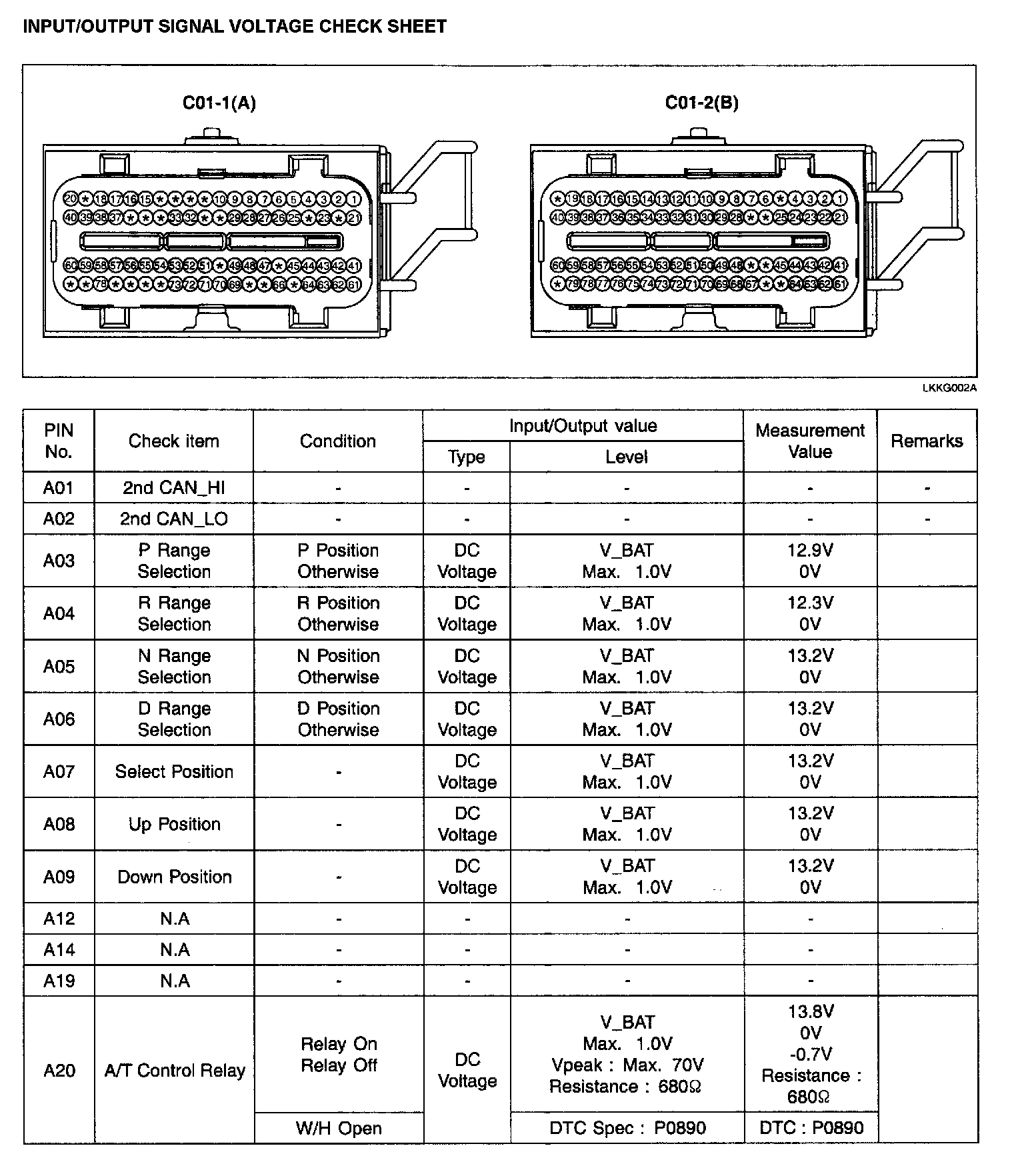 INPUT/OUTPUT SIGNAL VOLTAGE CHECK SHEET: