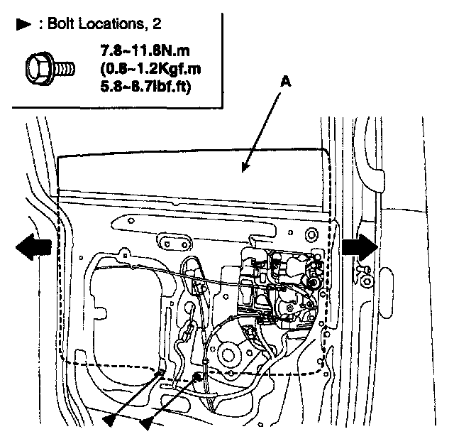 2. Carefully move the glass (A) until you can see the glass mounting bolts then loosen them.