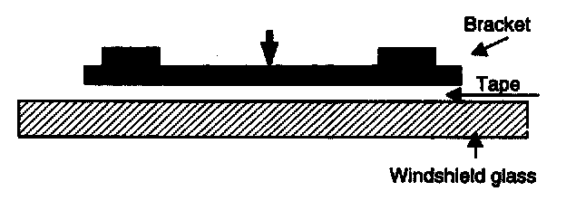 1. Install the rain sensor bracket to the windshield glass using the tape