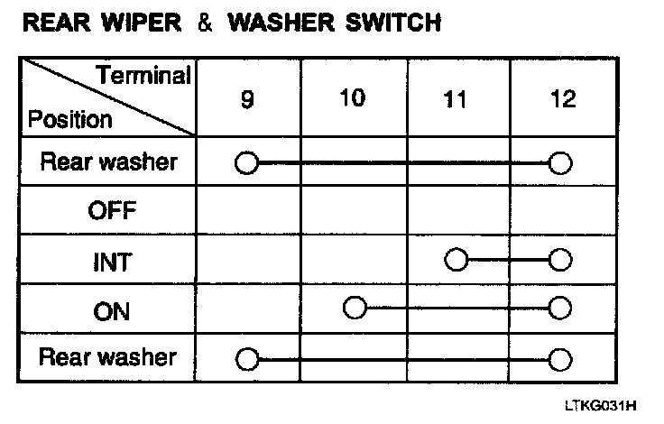 With the rear wiper & washer switch in each position, make sure that continuity exists between the terminals. If continuity is not as specified, replace the multifunction switch.