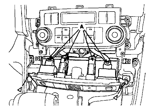 3. Remove the center facia panel (A) after loosening screws. Take care not to damage fixing clips.