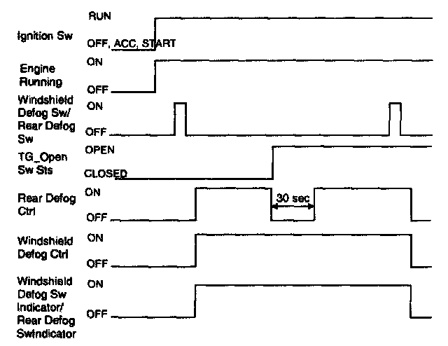 1. Once Generator "L" is ON, if the defogger is switched ON, the defogger will stay ON for 20 minutes duration.