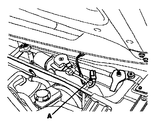 2. Disconnect the windshield deicer connector (A) from the wiper motor linkage.