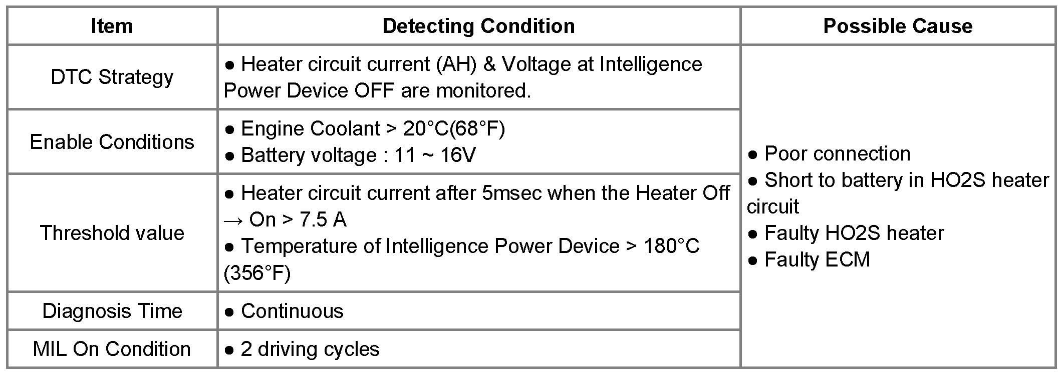 If the current or temperature of Intelligence Power Device is out of threshold, the ECM determines that a fault exists and a DTC is stored.