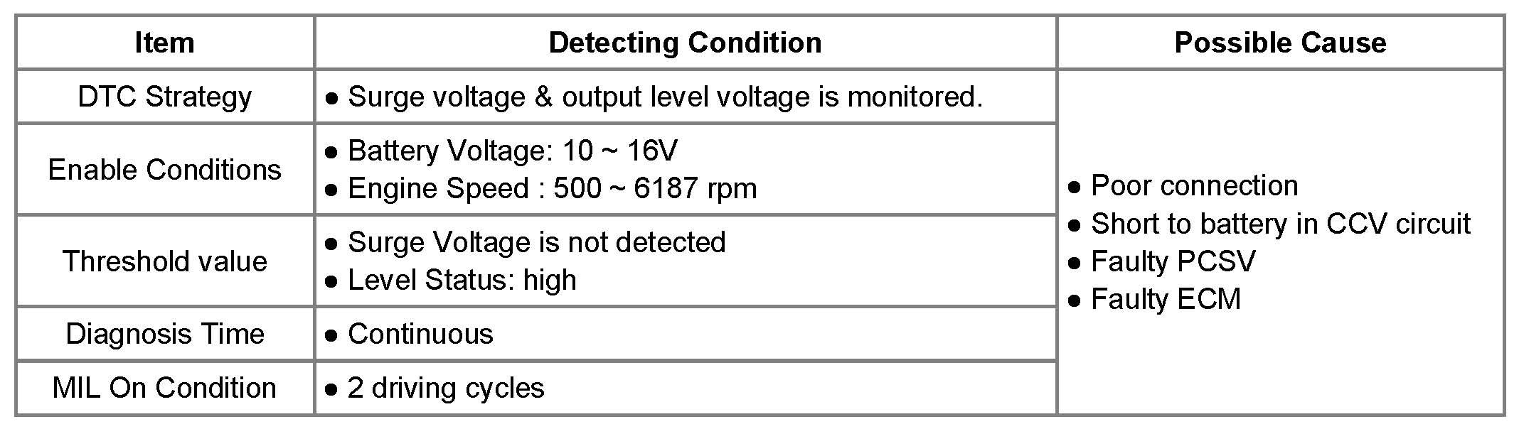 If the circuit of CCV is short, the ECM determines that a fault exists and a DTC is stored.