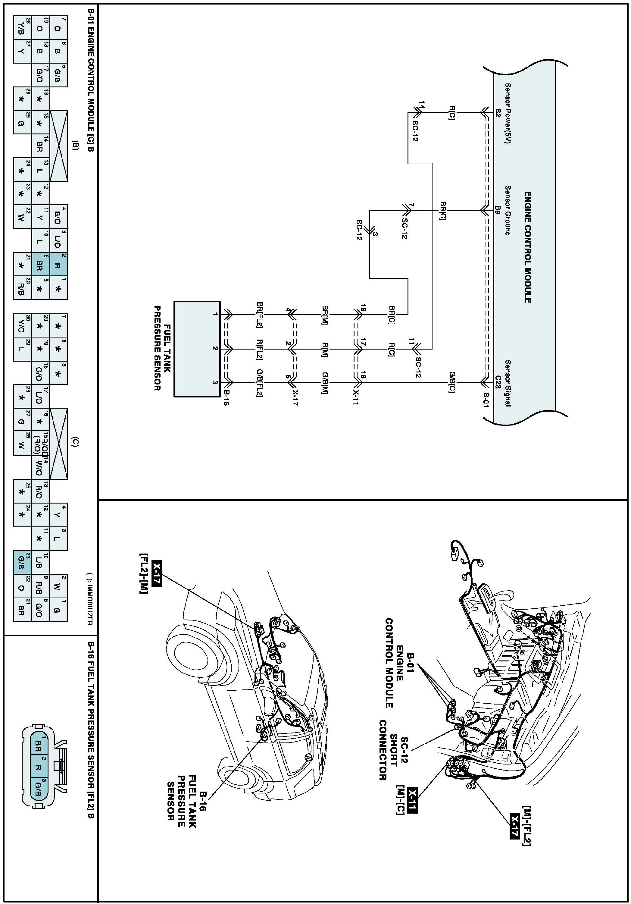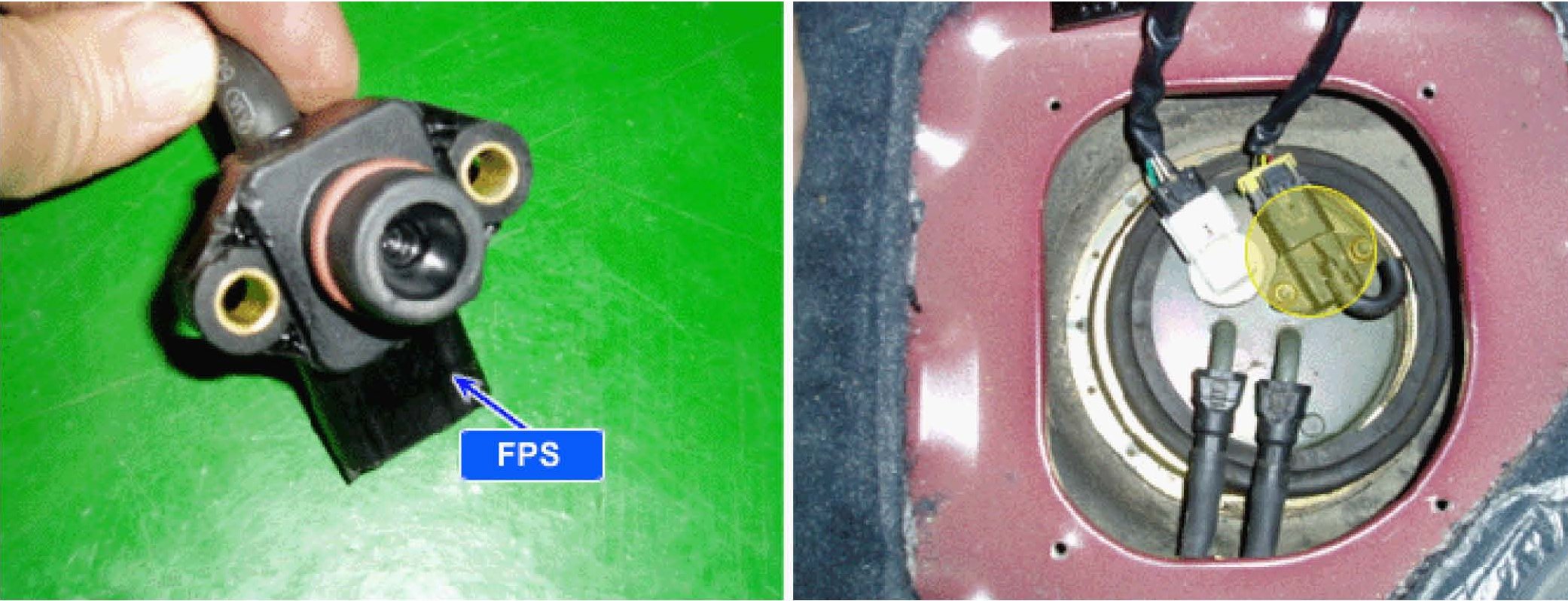 The evaporative emission control system prevents hydrocarbon vapors from escaping from the fuel tank into the atmosphere where they could form photochemical smog. Gasoline vapors are collected in the charcoal canister. The Fuel Tank Pressure Sensor (FTPS) is an integral part of the evaporative monitoring system. The ECM monitors the FTPS signal to detect vacuum decay and excess vacuum. The FTPS measures the difference between the air pressure inside the fuel tank and outside air pressure to check the purge control solenoid valve operation and for leak detection in the evaporative emission control system by monitoring pressure and vacuum levels in the fuel tank during the purge control solenoid valve operating cycles.