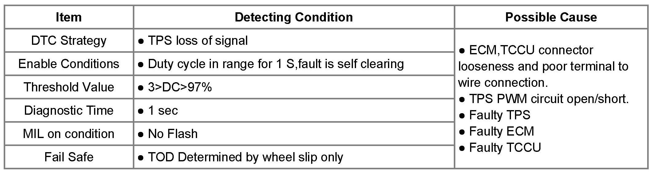 TPS is a signal to judge the amount of depressing accel and this is inputted into TCCU from engine ECM with PWM signal. Together with speed sensor signal ,TPS signal is a reference to decide torque distribution amount to front and rear wheels.