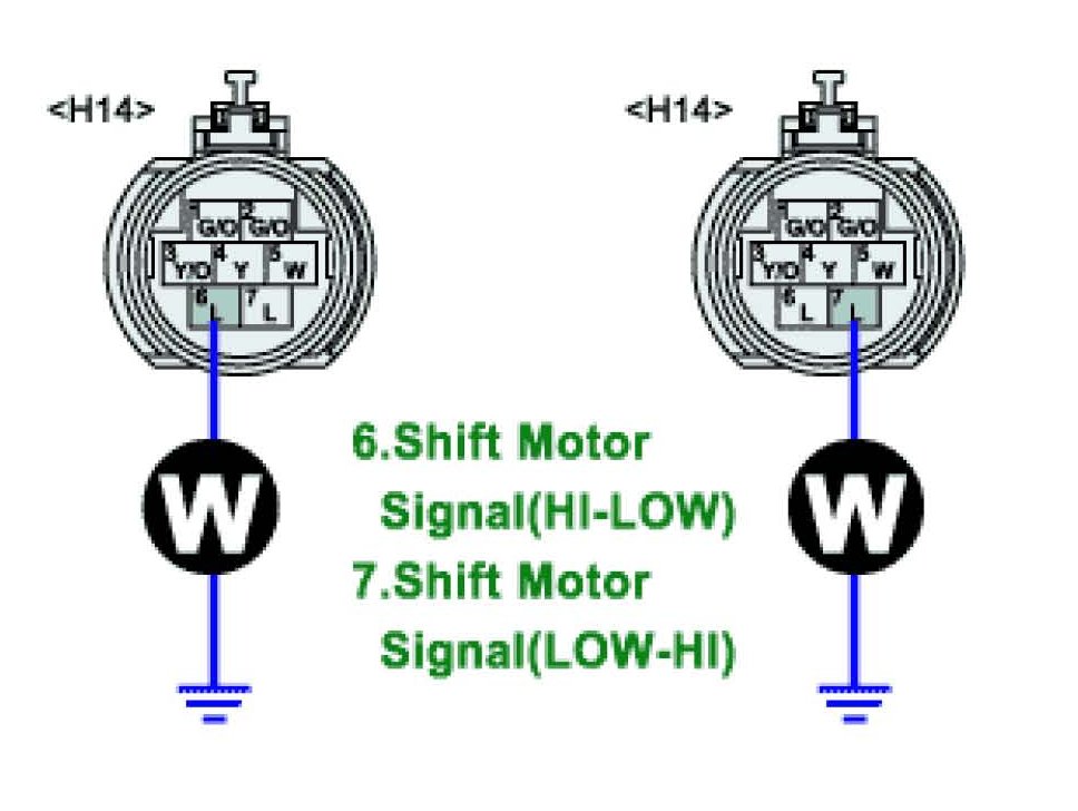 Shift motor is used to change working range of transfer by utilizing Auto/low selection switch. AUTO - LOW Mode: 1,2 terminal B(+), 16,17 terminal (Ground) LOW - AUTO Mode: 16,17 terminal B(+), 1,2 terminal (Ground)