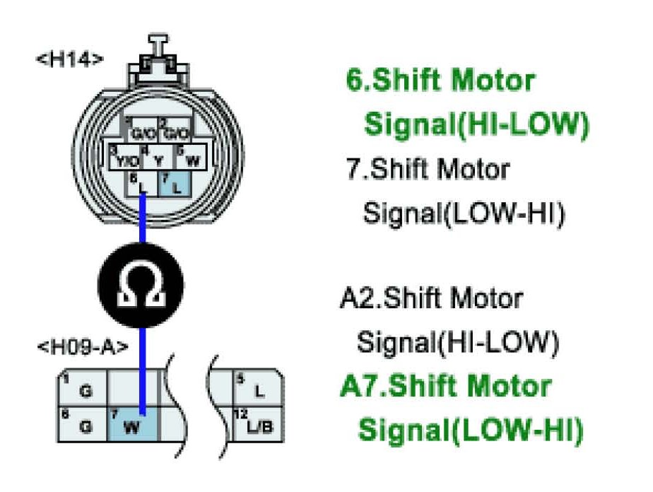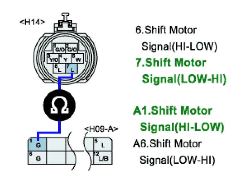 Shift Motor(HI-LOW) harness short circuit to ground inspection