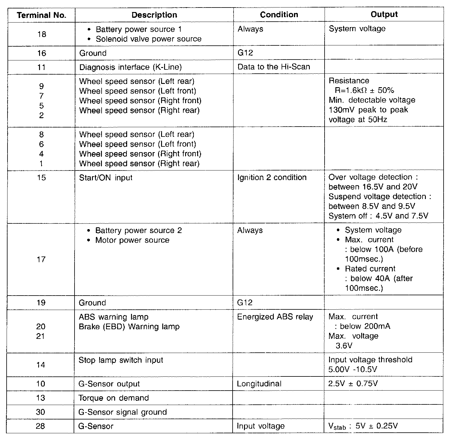 TERMINAL VOLTAGE CHART:
