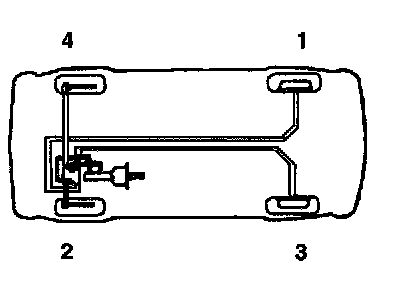 6. Repeat the step 5, until there are no more bubbles in the fluid for each wheel in the sequence shown in the illustration.