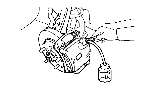 5. While depressing the brake pedal fully, loosen the bleeder screw until fluid runs out. Then close the bleeder screw and release the brake pedal.