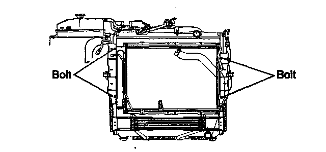 6. Remove the air conditioner condenser fixing bolts and radiator bracket fixing nuts.