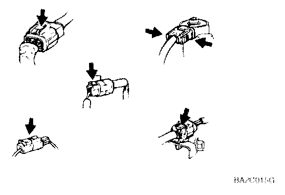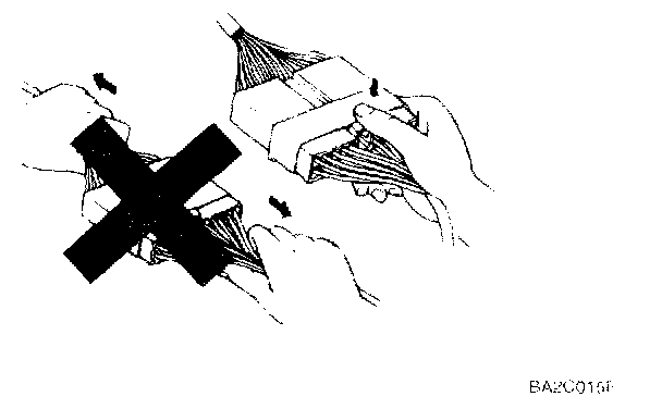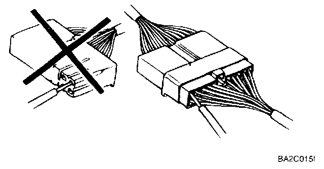 1. Never pull on the wiring harness when disconnecting connectors.