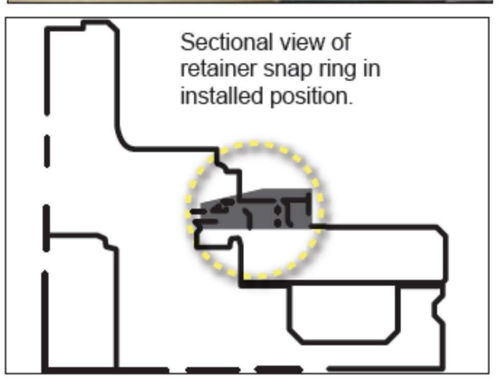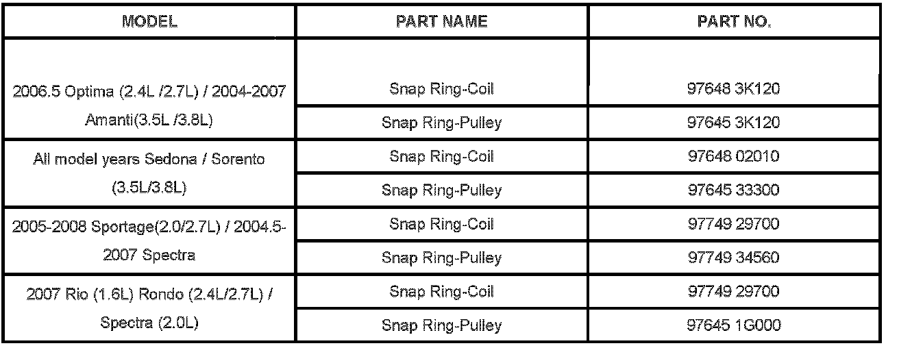 during installation of retainer snap ring on DOOWON manufactured Compressors, there is a specific orientation of the snap ring to the pulley assembly. Insure that the beveled/sloped side of the snap ring is installed in the "UP" position.
