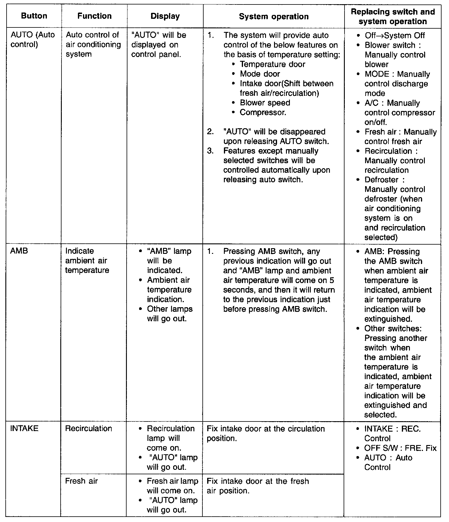 1. Full auto air conditioning system: One-touch button type.