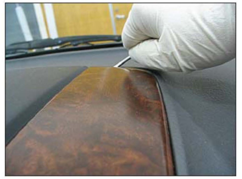 1. Remove the center fascia side trim panels. Carefully insert a small screwdriver tip into the end of the center vent assembly and pull rearward to disengage retaining clips.