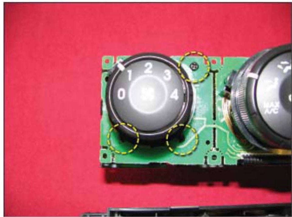 This bulletin provides information related to light bulb replacement in the 2003-2006 Sorento (BL) HVAC control head. The replacement light bulbs are available separately as a service replacement part. Kia recommends replacing all three (3) control head light bulbs at the same time. When replacing the light bulbs of the HVAC control head assembly, follow these replacement procedure instructions.