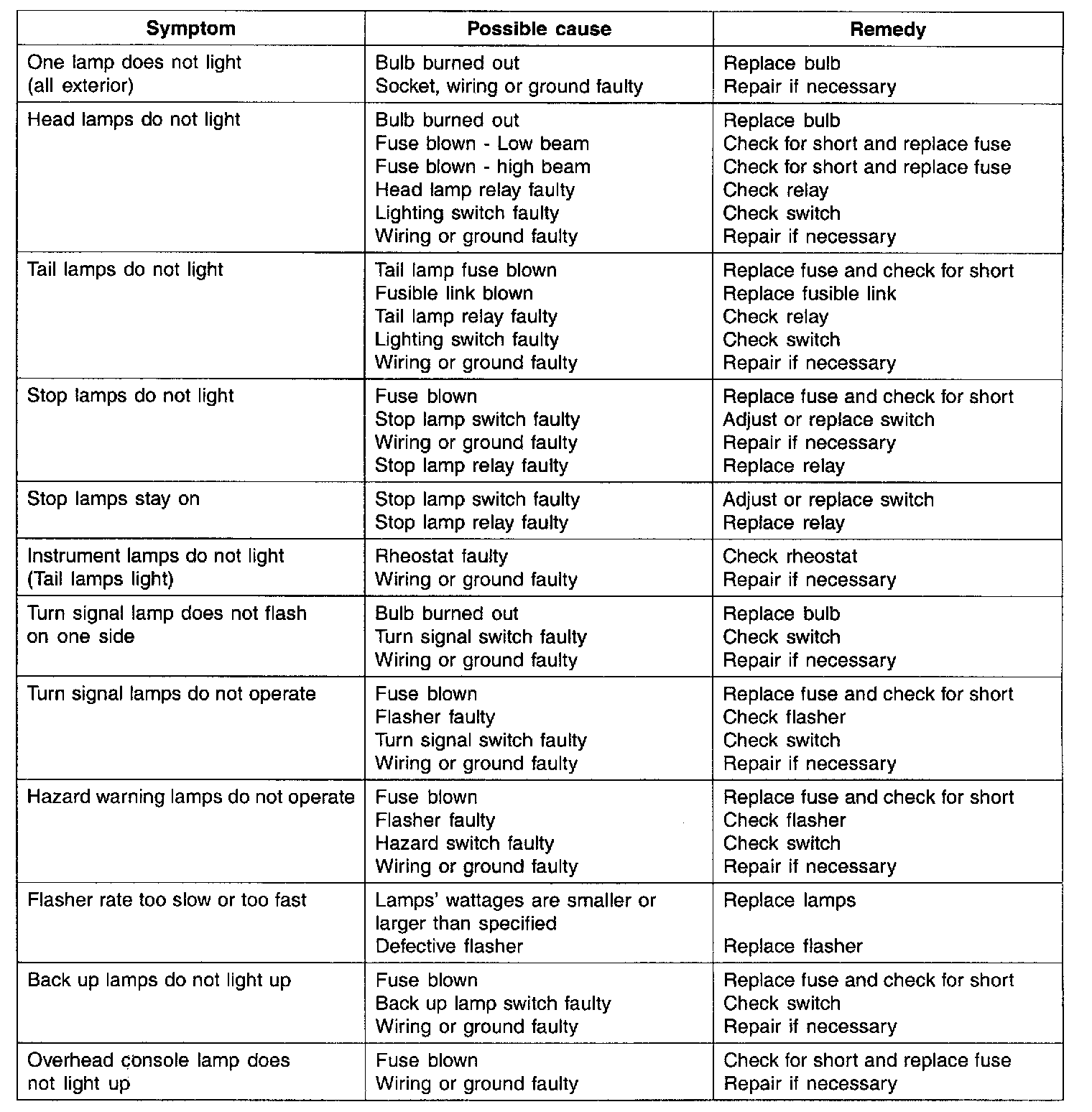 Symptom / Possible Cause: