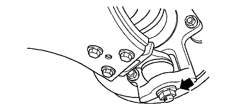 2. Remove two bolts and remove brake caliper from brake rotor. Temporarily tie caliper to vehicle frame with wire.