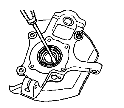 1. Using a screwdriver, pry out oil seal from knuckle (4WD).