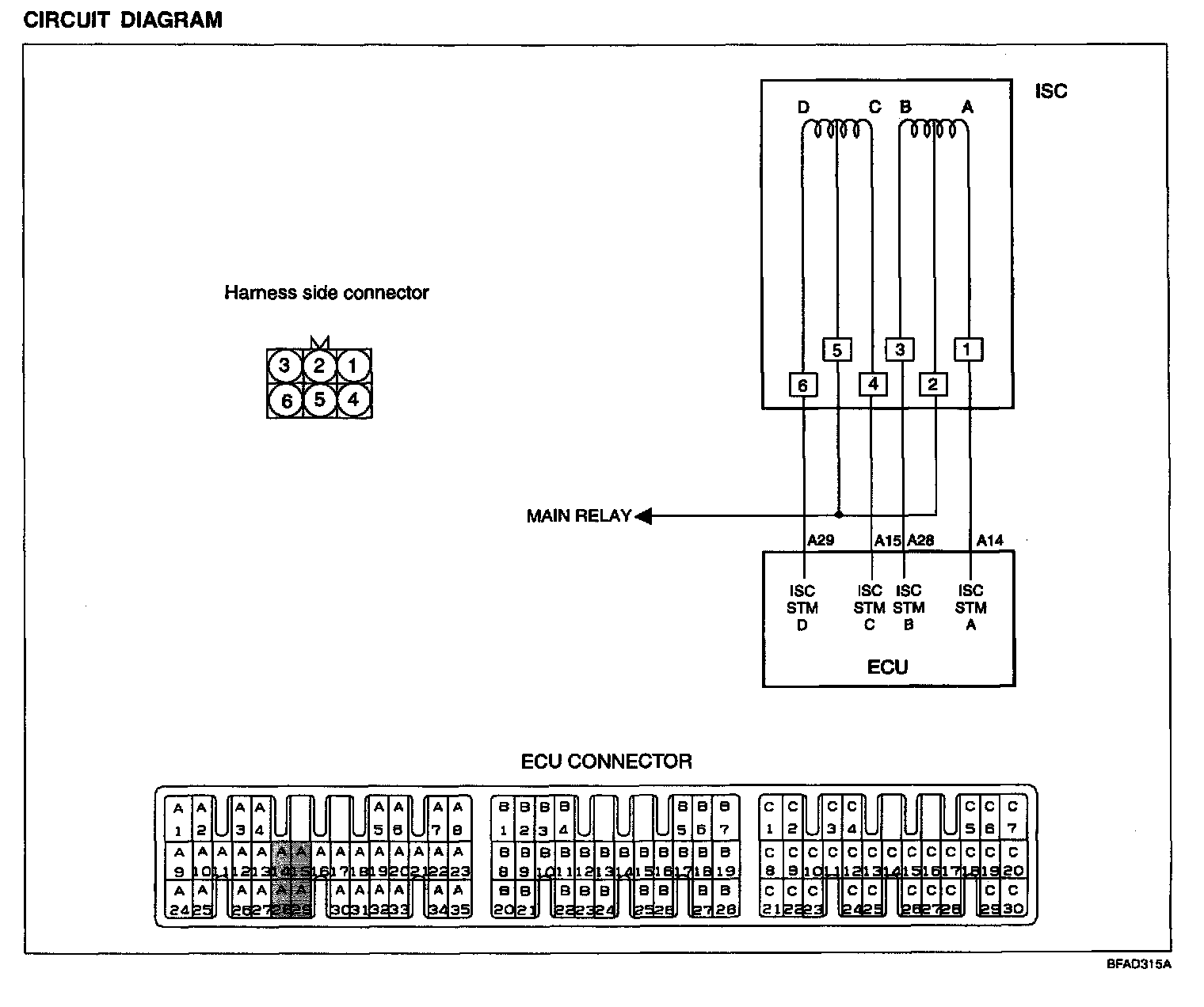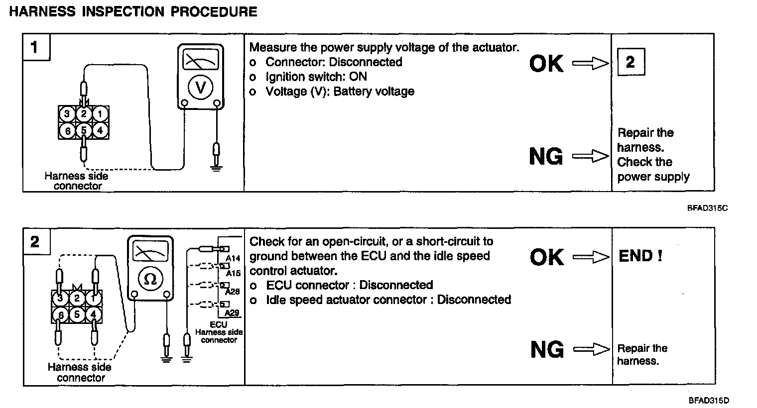 - Open or short circuit is observed in idle air control system when ignition switch is turned on.