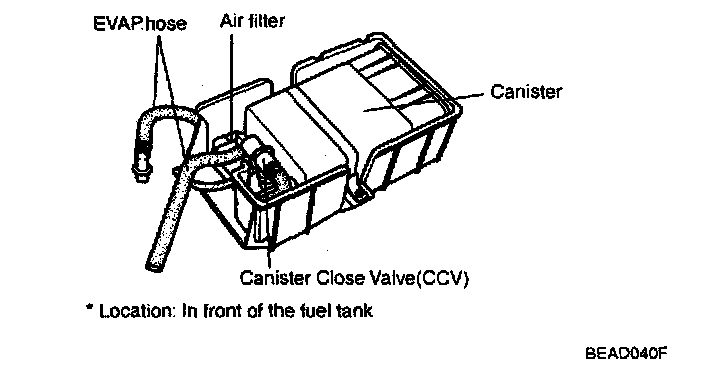 Inspect the Canister Close Valve (CCV) and its air filter as shown in the illustration.