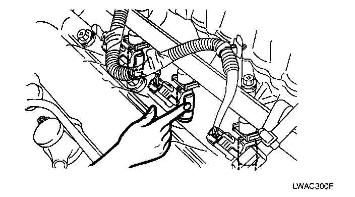 2. If a stethoscope is not available, check the injector operation with your finger. If no vibration is felt, check the wiring connector, injector or injection signal from the ECU.