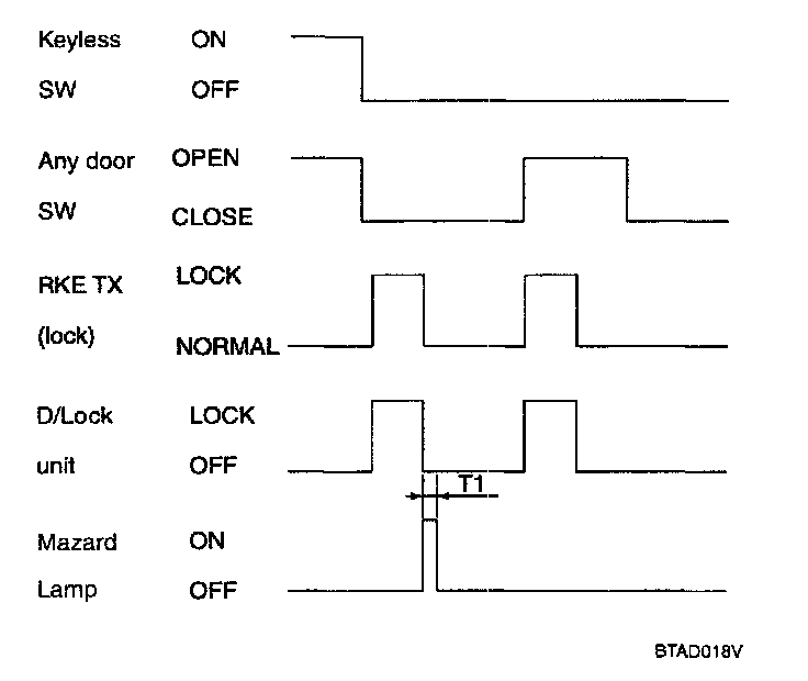 2. Remove the battery voltage and then check the operation of the keyless entry system.