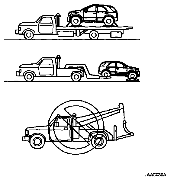 On 4WD vehicles, it is recommended that your vehicle be towed with a wheel lift and dollies or flatbed equipment with all the wheels off the ground.