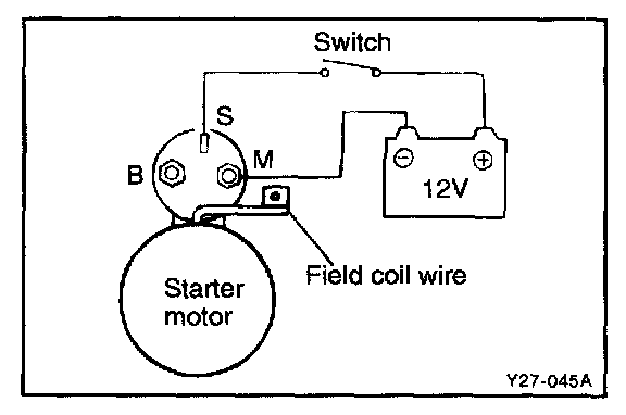 1. Disconnect the field coil wire from the M-terminal of the magnetic switch.