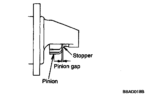 5. If the pinion gap is out of specification, adjust by adding or removing gaskets between the solenoid and the front bracket.