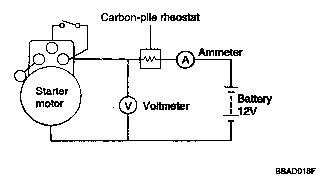 3. Connect a voltmeter (15-volt scale) across starter motor.