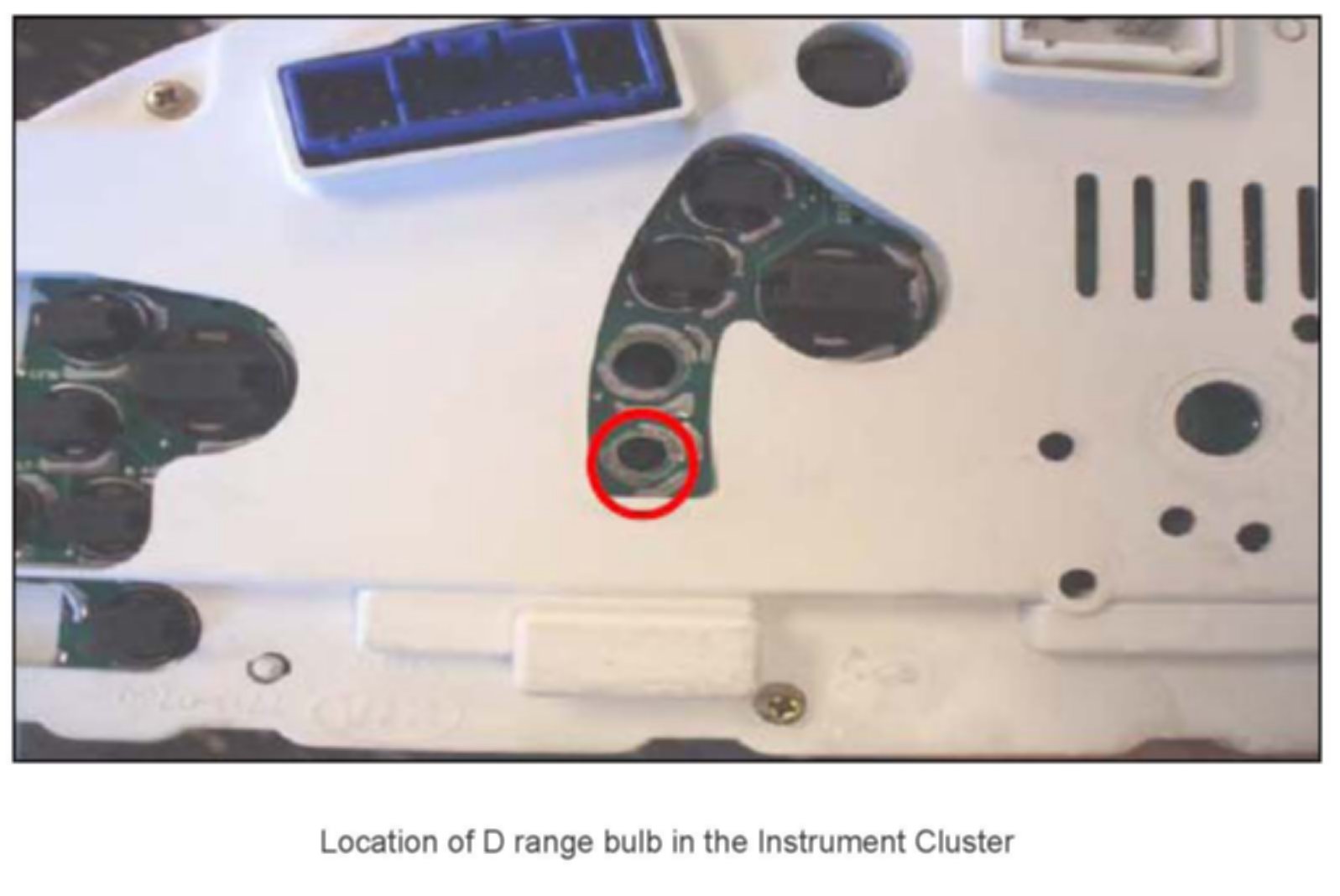 Tech-line has received some inquires reguarding the availability of the "D" range light bulb replacement on the instrument panel cluster assembly on the Sorento. Please see table below for parts information.