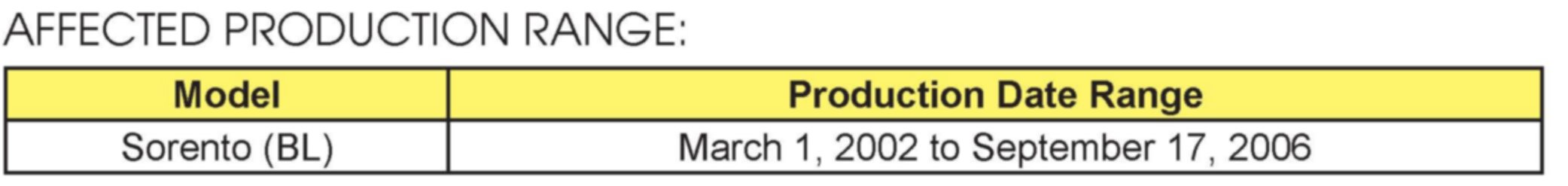 AFFECTED PRODUCTION RANGE