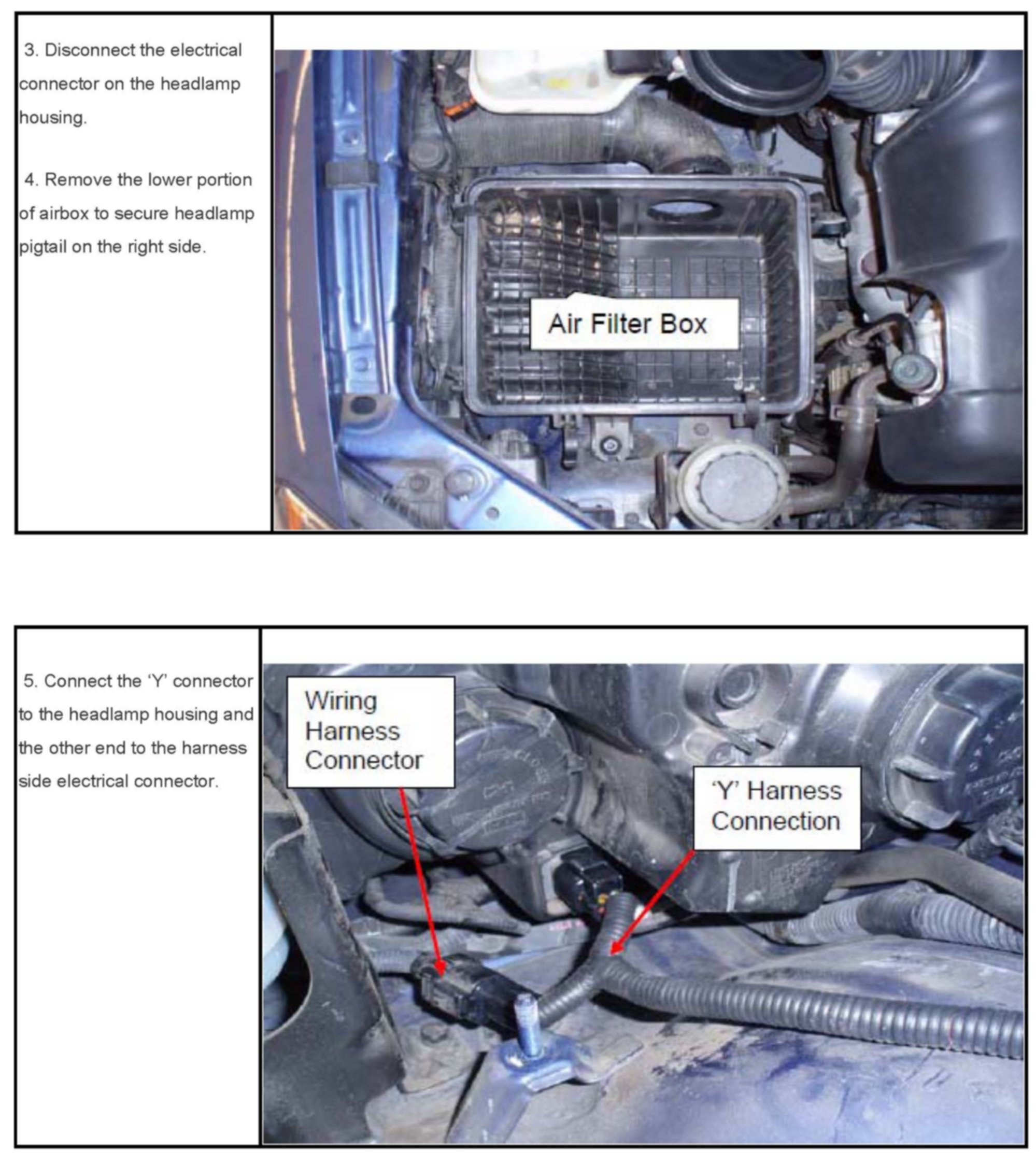 Some customers may complain of short headlamp bulb life in the 2003-2006 Sorento models. To address the customer concern a new resistive wire harness has been introduced to extend the life of the low beam bulbs. Following these procedures should resolve the customer complaint when the resistive harness is installed with new replacement head lamp bulbs.