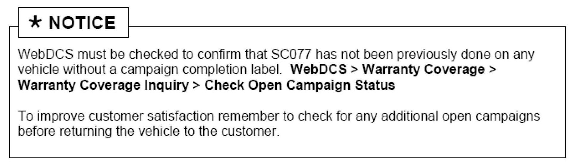 If label does not exist, VERIFY SC077 HAS NOT BEEN DONE on WebDCS before continuing to step two (2) of this procedure.