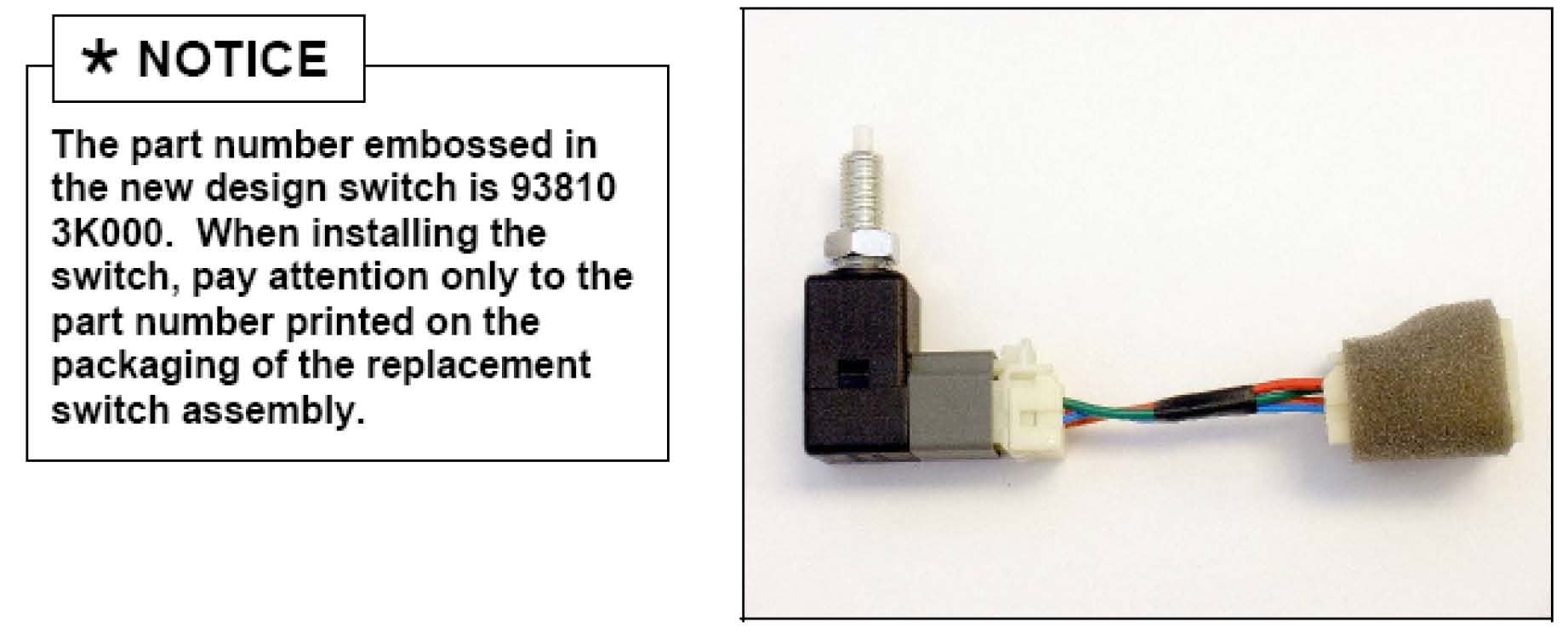 4. Install new stop lamp switch part number 93810 3K300QQK with gray colored connector and cross-wiring extension harness.