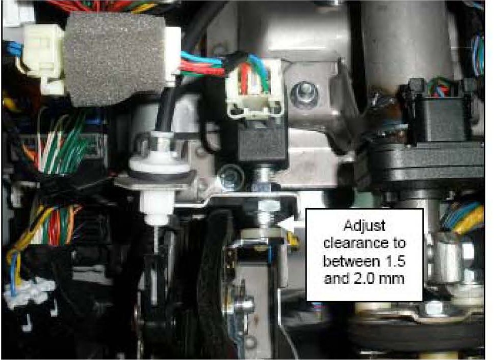 During installation of the new stop lamp switch be sure to adjust the clearance at the switch and brake pedal stopper to between 1.5 and 2.0 mm.