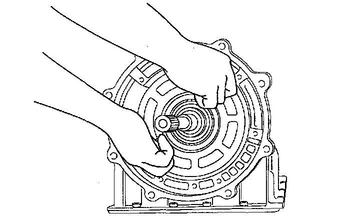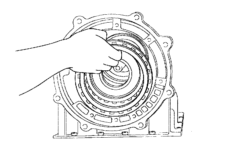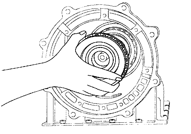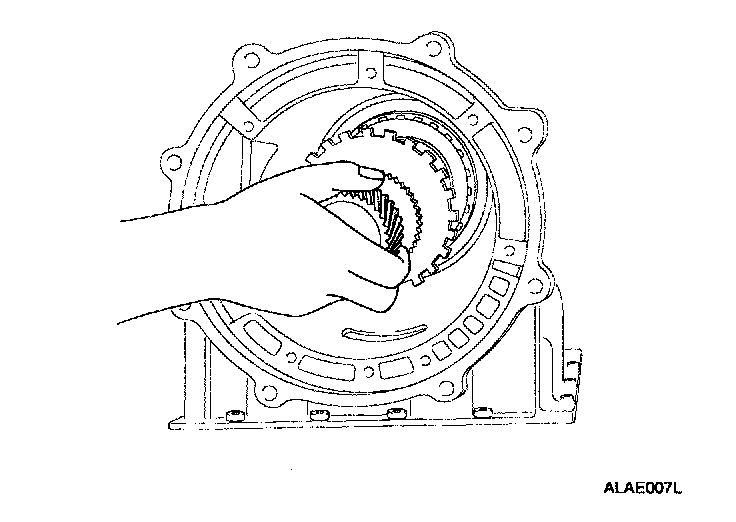 10. Remove the middle sun gear, the rear sun gear assembly, and the high & low reverse clutch hub as a unit.
