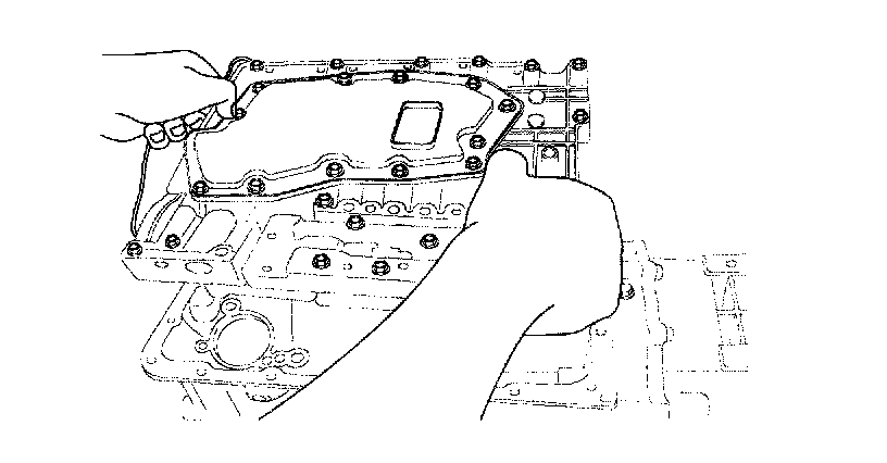 13. Remove oil pan bolts (22), then the oil pan. Remove the oil pan gasket.